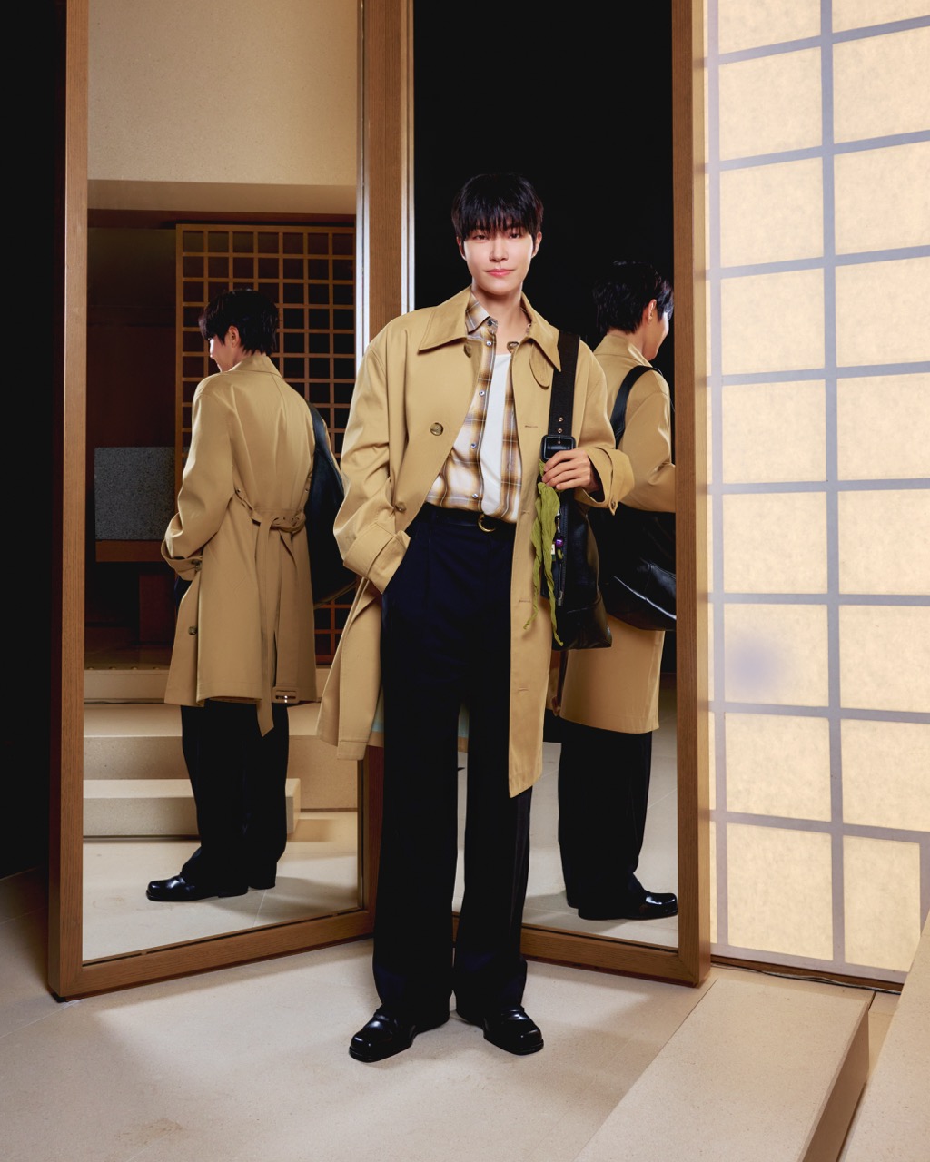 매장에서는 2026년 봄-여름 컬렉션을 시작으로 파리지앵 스타일의 제품을 만나볼 수 있다. 길에서 지층 통로를 지나 입구에 다다르면, 마가목과 단풍나무를 비롯한 지역 식물들로 조성된 정원을 지나 플래그십 안을 둘러볼 수 있다. 매장의 디자인은 전통 한옥의 특징을 살렸으며, 참나무와 화강암, 대리석 소재를 조화롭게 사용해 아늑한 분위기를 연출하고 Ami Paris의 시그니처 색상인 베이지, 골드, 샴페인 골드, 미러 마감으로 포인트를 더했다.